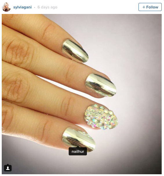 Lượn qua một vòng các trang mạng xã hội, dường như các tín đồ làm đẹp đang vô cùng thích thú với những màu sơn nhũ kim loại có phản chiếu ánh hương. Đặc biệt, màu sơn này cũng rất thích hợp cho những cô nàng thích tiệc tùng trong dịp đầu năm mới. Tuy nhiên, bạn cũng cần bảo vệ móng tay bằng lớp sơn dưỡng thật tốt để tránh làm hư móng tay khi sơn nhiều màu lạ.