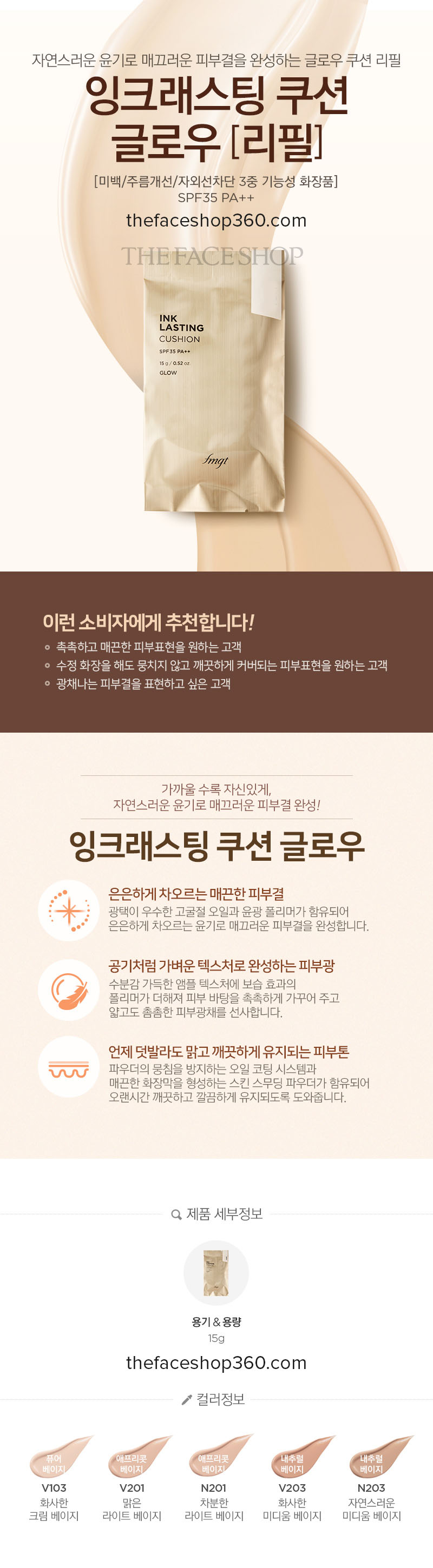 Lõi phấn nước lâu trôi hiệu ứng căng bóng Ink Lasting Cushion Glow Spf35 PA++ Refill fmgt The Face Shop