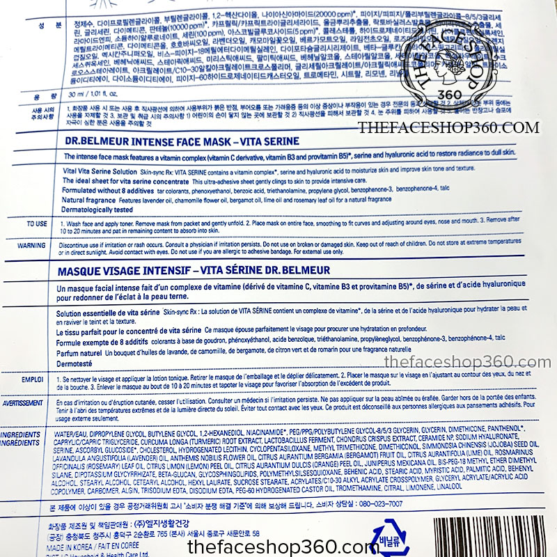 Mặt nạ trắng sáng da Dr. Belmeur Intense Face Mask Vita Serine 30ml