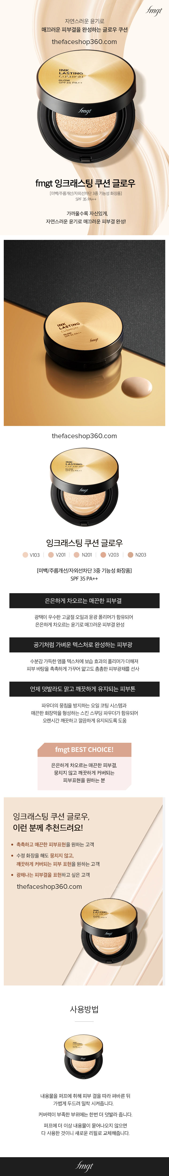 Hướng dẫn sử dụng Ink Lasting Cushion Glow SPF35 PA++ fmgt
