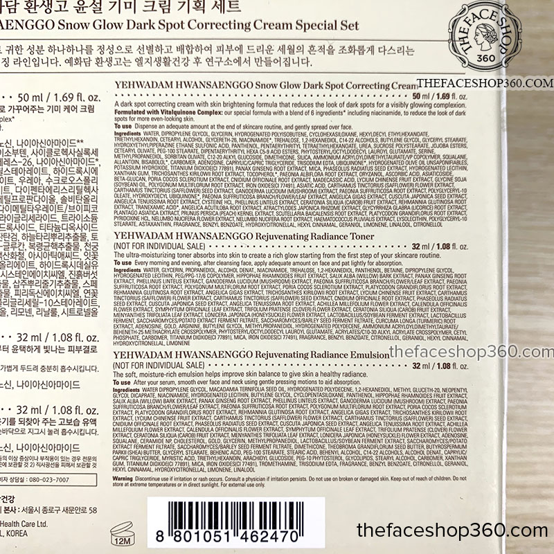 Thành phần Yehwadam Hwansaenggo Snow Glow Dark Spot Correcting Cream Special Set