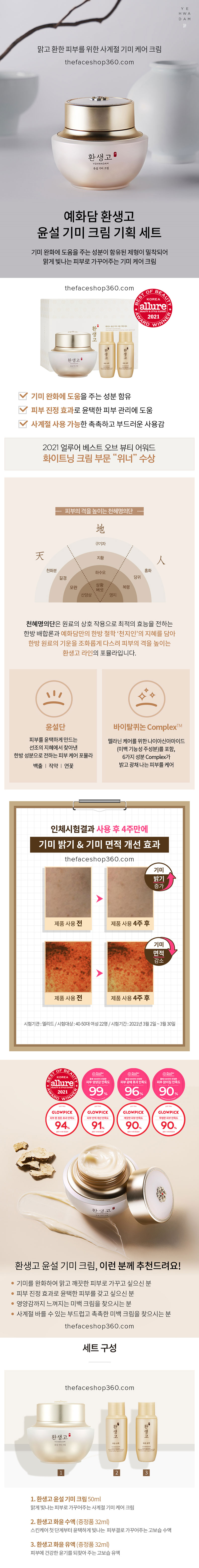 Đây là set kem dưỡng đặc biệt bao gồm Kem Yehwadam Hwansaenggo Snow Glow Dark Spot Correcting chuyên dưỡng trắng sáng, đặc trị thâm/ nám/ tàn nhang 50ml.