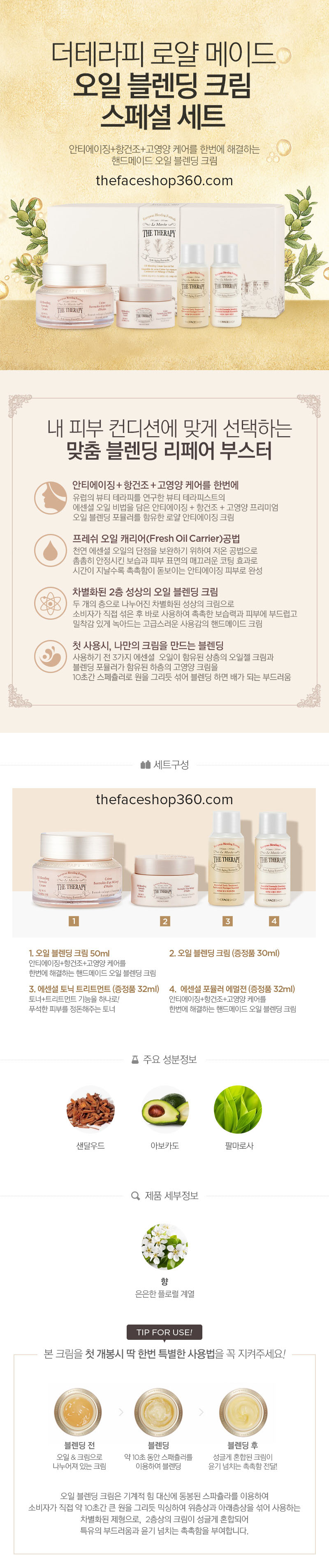 Set kem dưỡng ngăn ngừa lão hóa The Therapy Oil Blending Cream special set là phiên bản đặc biệt siêu lợi. Gồm 4 sản phẩm: