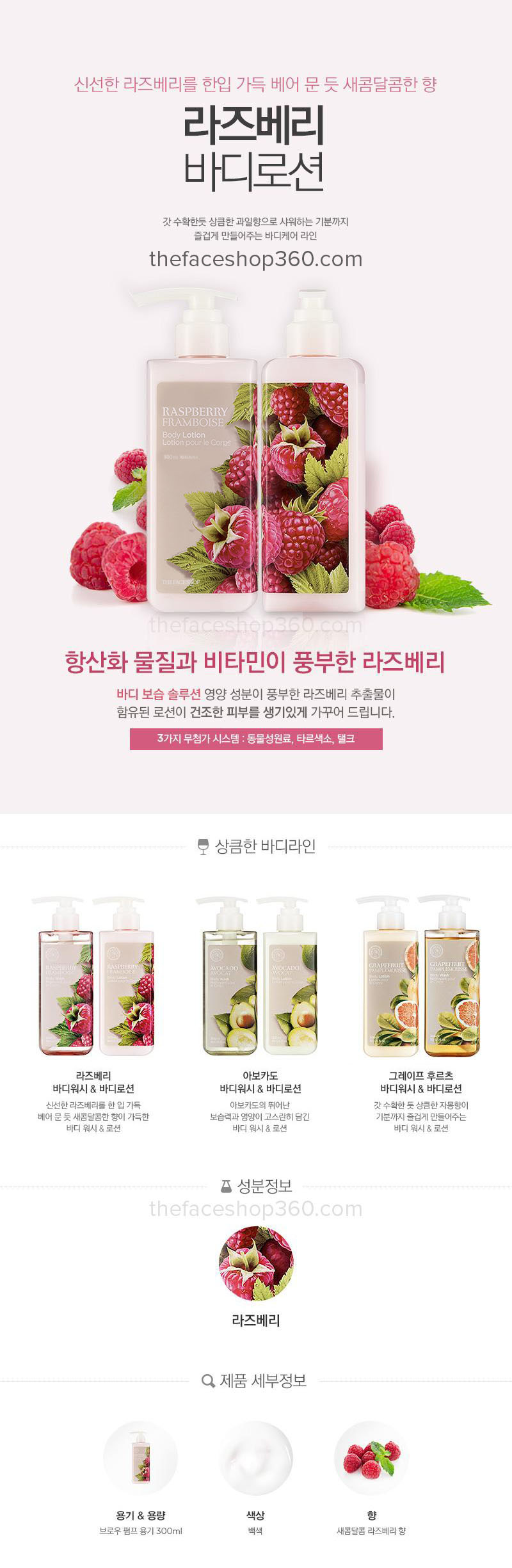 Thành phần sữa dưỡng thể Mâm xôi chống lão hóa Raspberry Body Lotion The Face Shop (300ml)