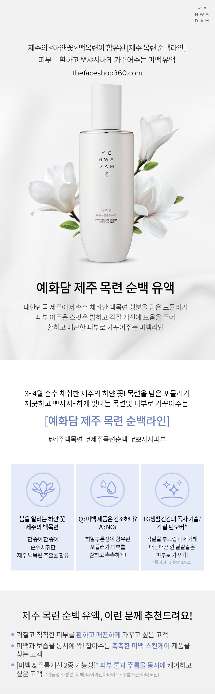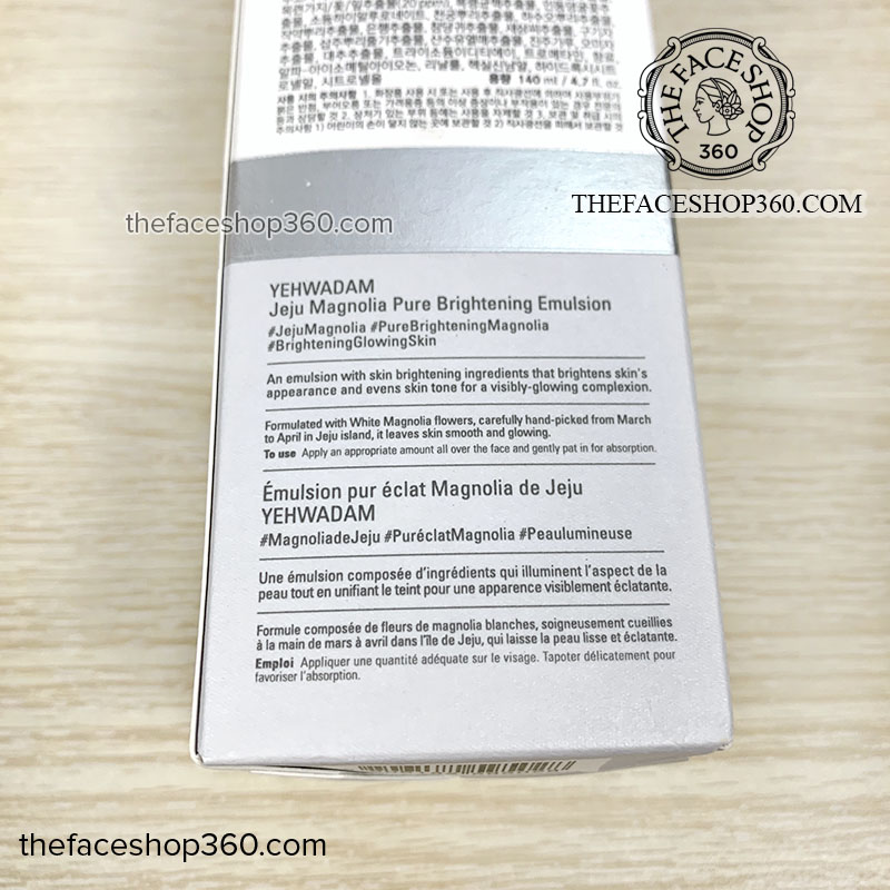 Sữa dưỡng trắng sáng da Yehwadam Jeju Magnolia Pure Brightening Emulsion The Face Shop (140ml)