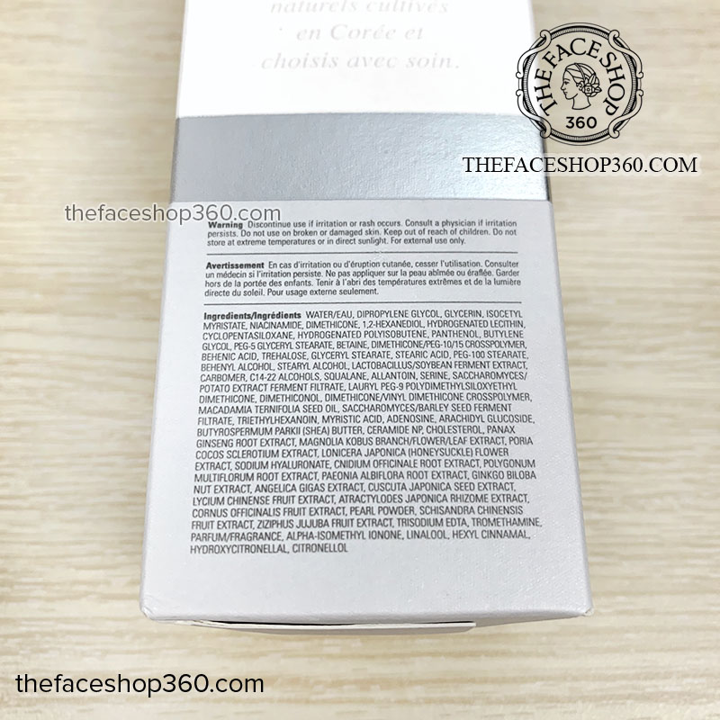 Thành phần chính từ Hoa Mộc Lan trắng được hái thủ công vào tháng 3 đến tháng 4 hàng năm tại đảo Jeju Hàn Quốc. Mang lại công dụng trắng sáng, mịn màng cho da, chống lão hóa hiệu quả. Làm giảm và làm biến mất các vết sạm nám, đốm nâu trên da.