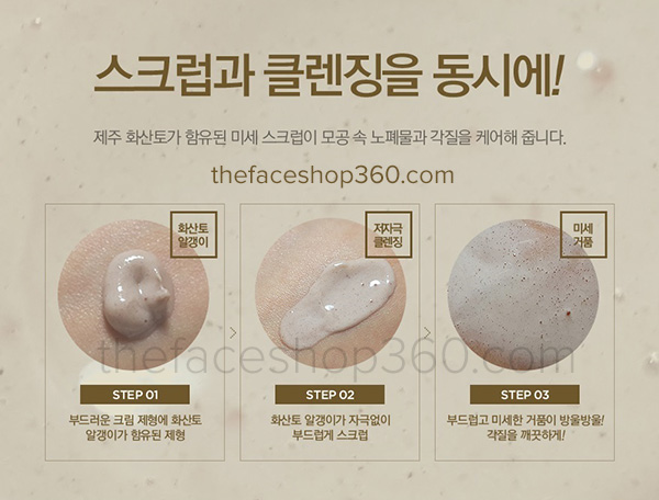 Sữa rửa mặt được chiết xuất từ tro núi lửa đảo Jeju giàu khoáng chất. Sản phẩm có khả năng hút sạch các bụi bẩn, dầu nhờn nằm sâu trong lỗ chân lông, thu nhỏ lỗ chân lông. Các hạt siêu mịn giúp massage, làm sạch tế bào chết và lưu thông tuần hoàn máu.